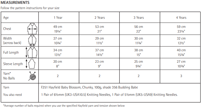 This Hayfield Baby Blossom Chunky Cardigan 5568 is perfect for your next project and only requires 2 - 3 balls of yarn to complete. It would suit an Intermediate Knitter.